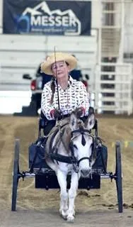Our October speaker, Kim Fay, has been doing outreach with her standard and mini donkeys for some years in the form of meet-and-greets at El Rancho de las Golondrinas (and many other venues). However, her own journey has led her to a passion for Combined Driving with her miniature donkey Cyder’s Sir Bentley with whom she has won placings at the Division (multi-state) level.